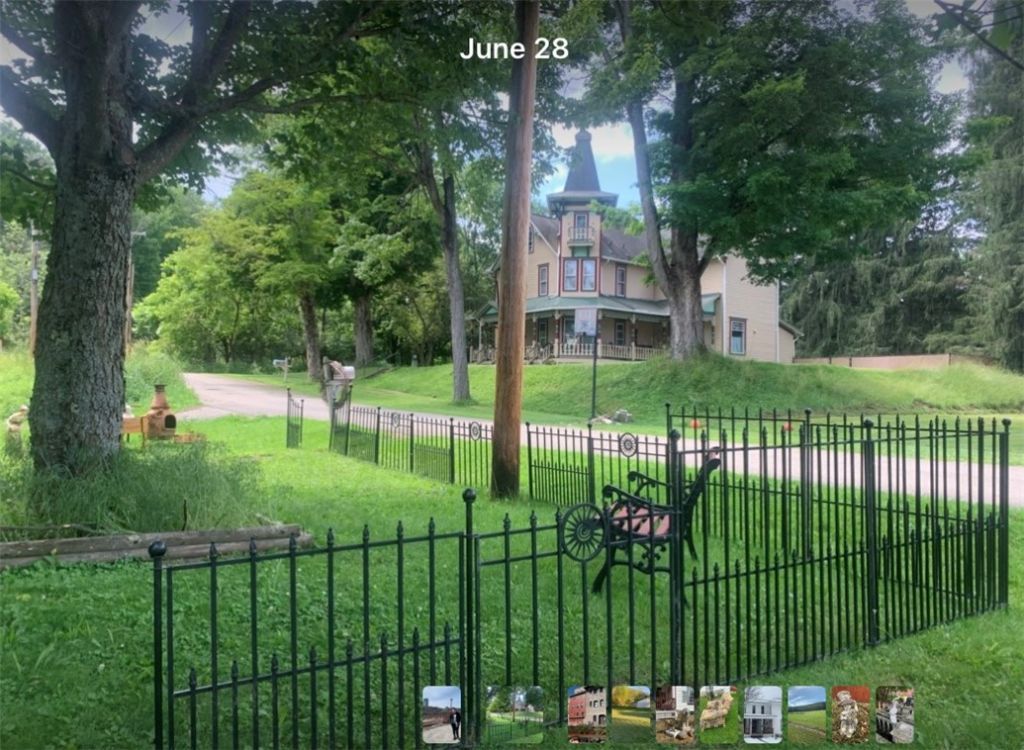 Gorgeous, private, dead end road property. Boasting 3.56 acres (in heart of town!) of mixed landscape, about 2/3 wooded with 1000's of maples, pines, black walnut trees, etc., some grapes/berry bushes. Some trees already logged, but many left to log. Huge, oversized 3+ car garage, could store up to 5 or so vehicles, has poured concrete floor in great condition. Huge storage area above garage, but has no access stairwell. 2688 sq. foot colonial manor with 3 beds upstairs. Pergot floor (kitchen) 1 bath upstairs with claw foot tub, and 1 down, with walk-in shower unit. Lg bathroom downstairs newly remodeled w/ceramic tile floor. Country kitchen with lg floor to ceiling pantry area. Large foyer, exquisitely accented with Victorian architectural mouldings. Open floor plan foyer 2 living room boasting of unique window dressings, textured floral panels and high end heavy designer curtains. Hardwood floors thr/out! columned front porch! (2 porches) New high efficiency boiler March of 2025, sewer pipe 2023/24, basement stairwell 2025. New exterior paint/shutters/accents/pair of lion statues/Victorian fountain 2023-25. Much more! Needs a few updates.